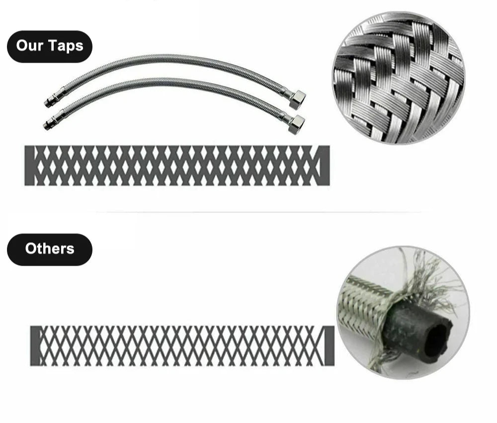 - 2 tuyaux d'entrée d'eau en acier inoxydable (60 cm, taille 3/8)