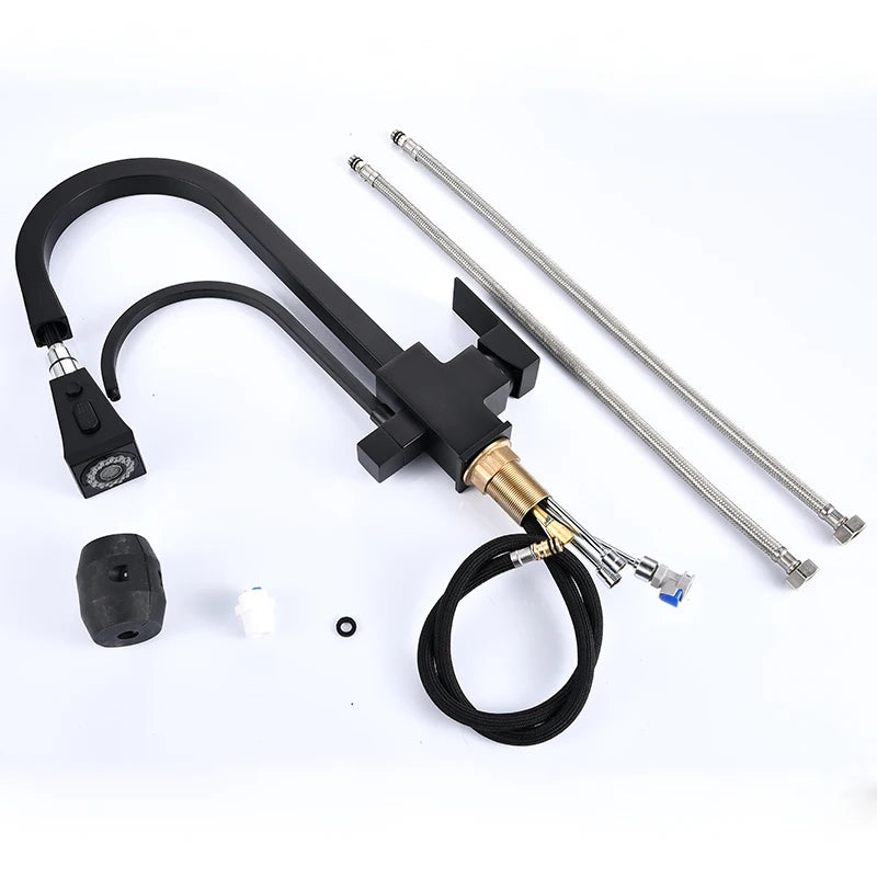 Apportez modernité et polyvalence à votre cuisine avec ce robinet en laiton massif, doté d’une élégante finition noir mat. Ce modèle est conçu pour répondre à tous vos besoins culinaires avec sa douchette extractible et son design contemporain, offrant à la fois fonctionnalité et style.